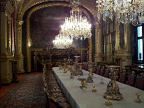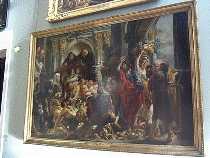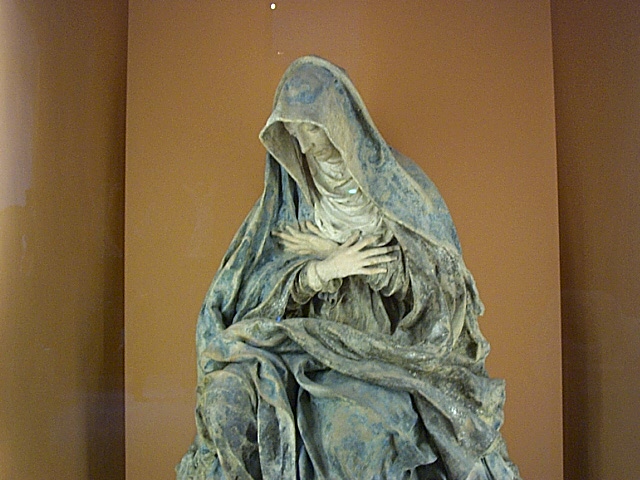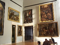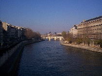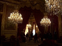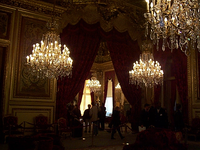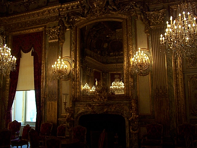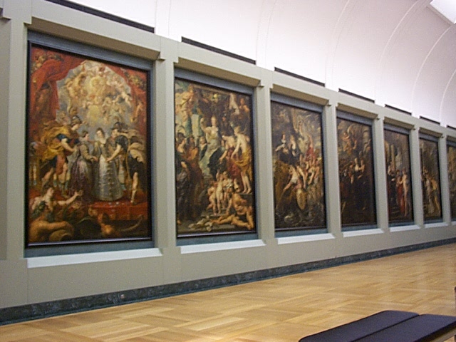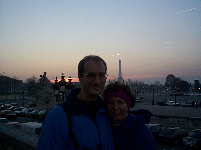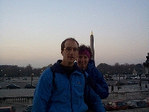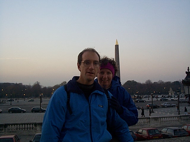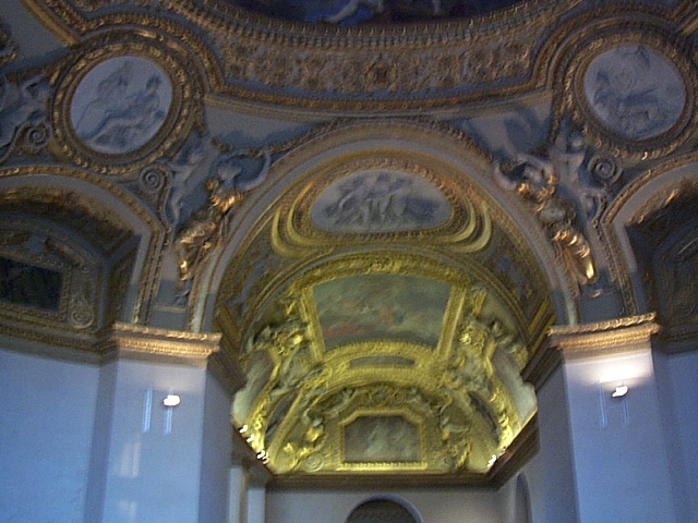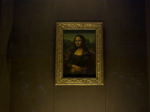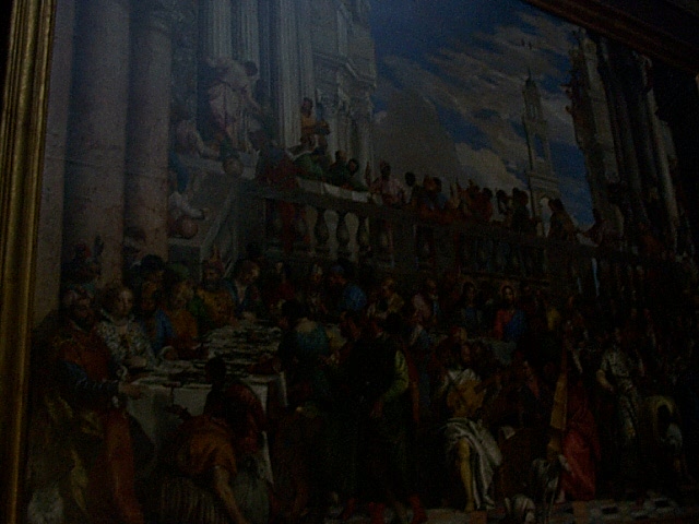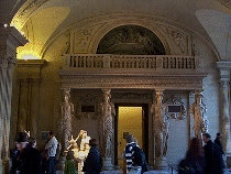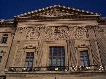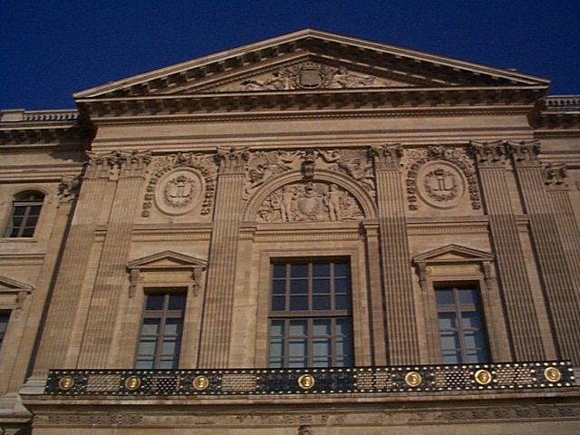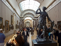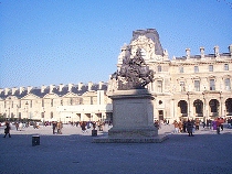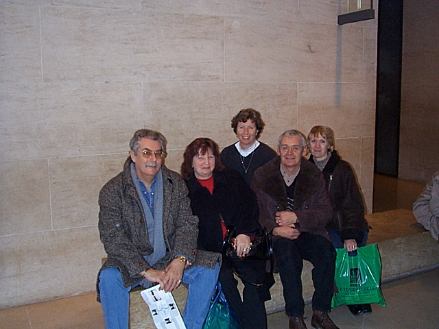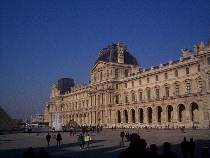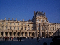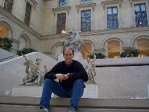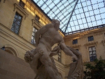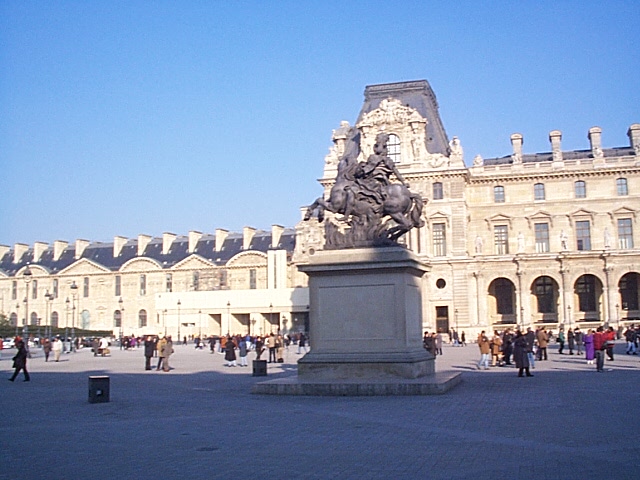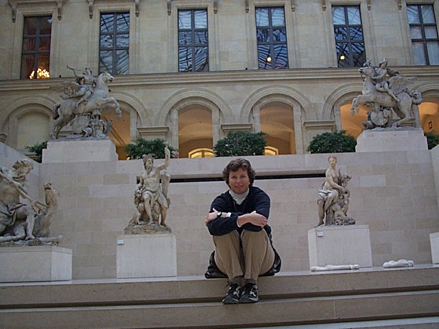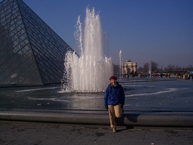 View of north side of Louvre in the pyramid coutyard - Sharon is in the